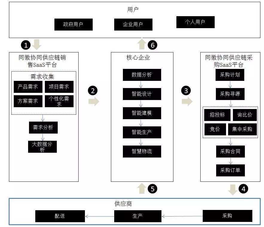 同徽协同供应链采购和协同供应链营销等产品是工业互联网实现供应链协同发展的重要组成部分。协同供应链营销能够收集客户和合作伙伴采购需求,经过系统大数据分析和建模将采购数据转化传送到企业内部智能系统,企业内部系统经过数据分析、设计、建模和生产,并将最终的成品通过智能物流的方式发送给客户。